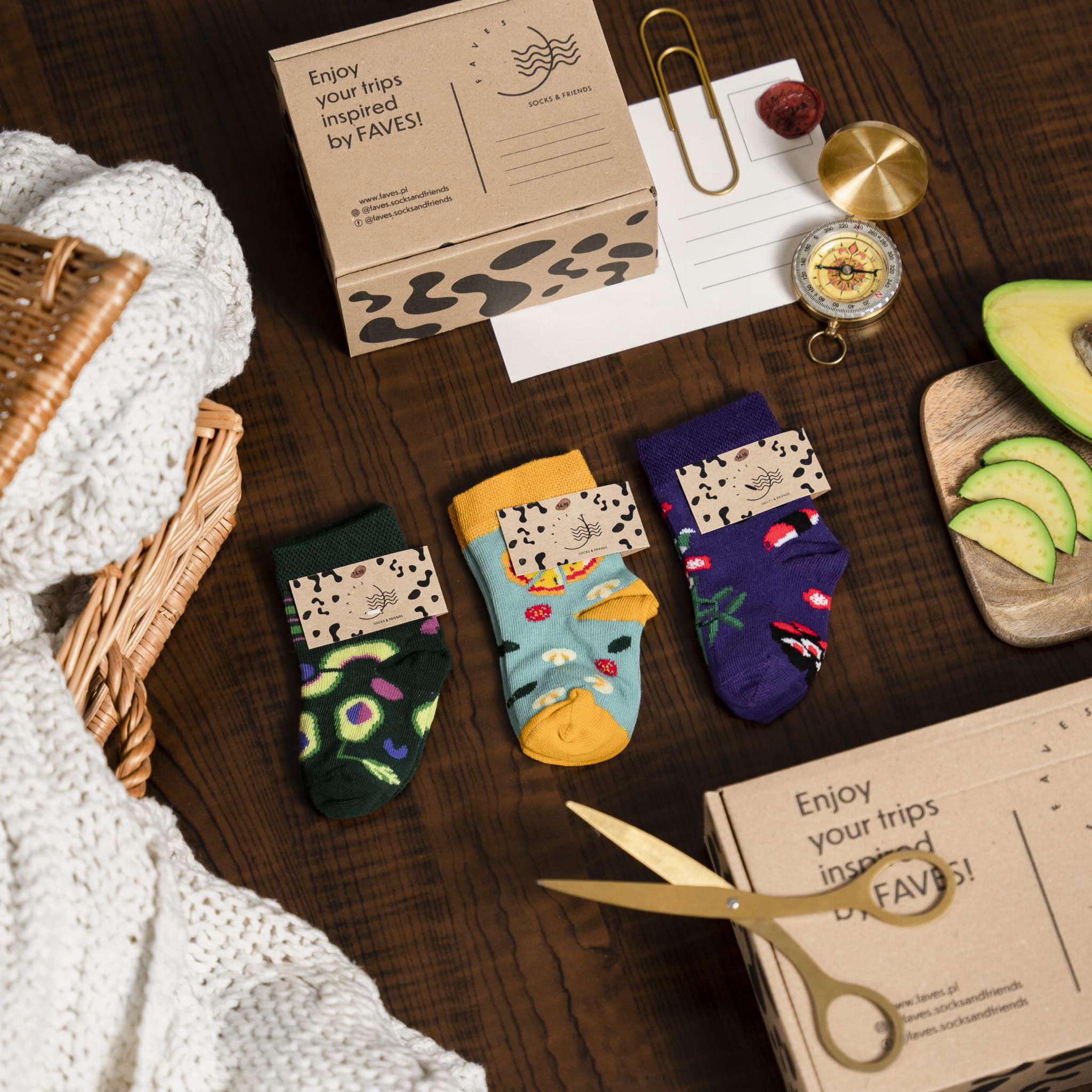 Set of Avocado Sushi Pizza Socks for Kids EU size 14-19