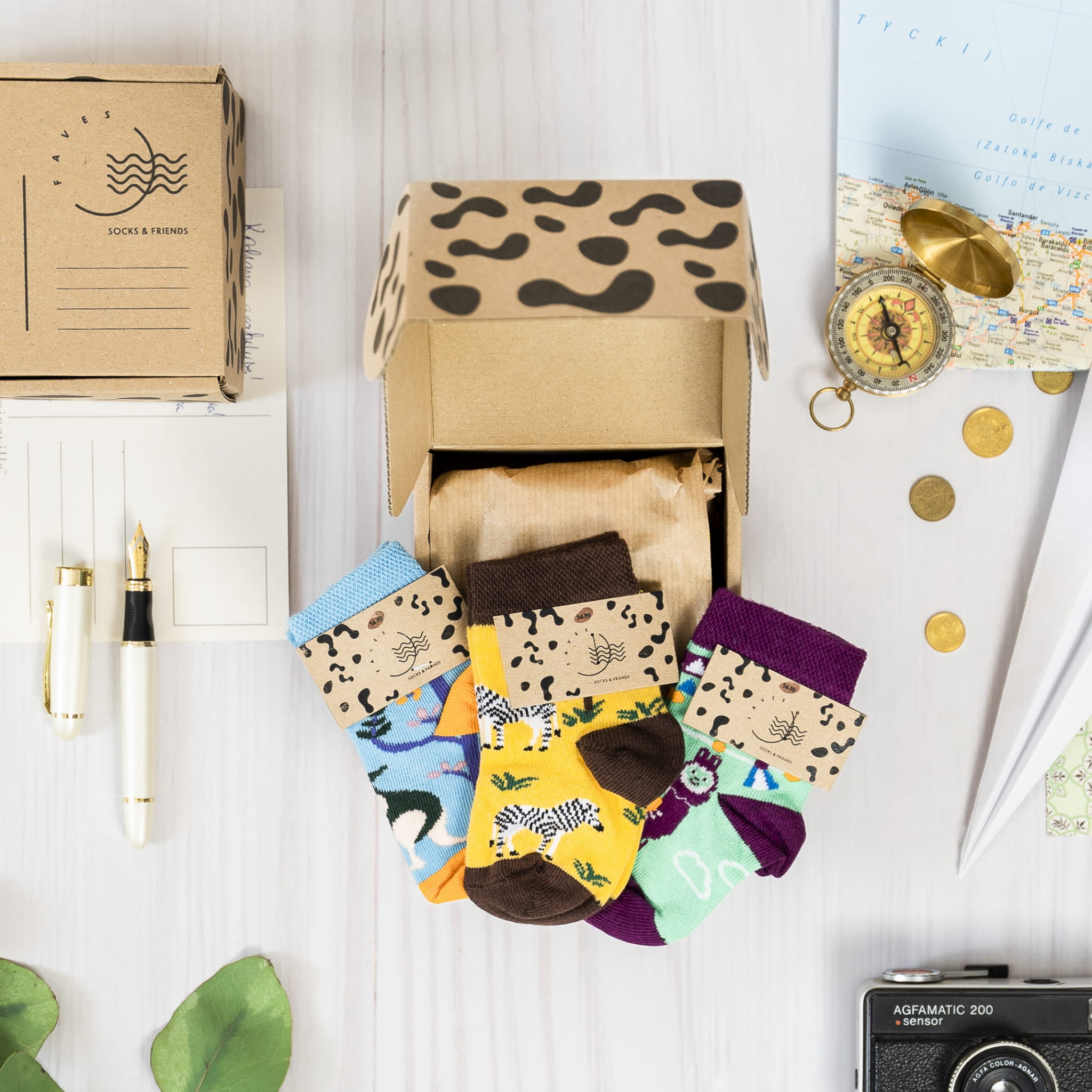 Set of Zebras Kangaroos Llamas Socks for Kids EU size 14-19