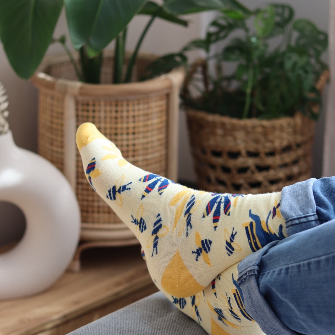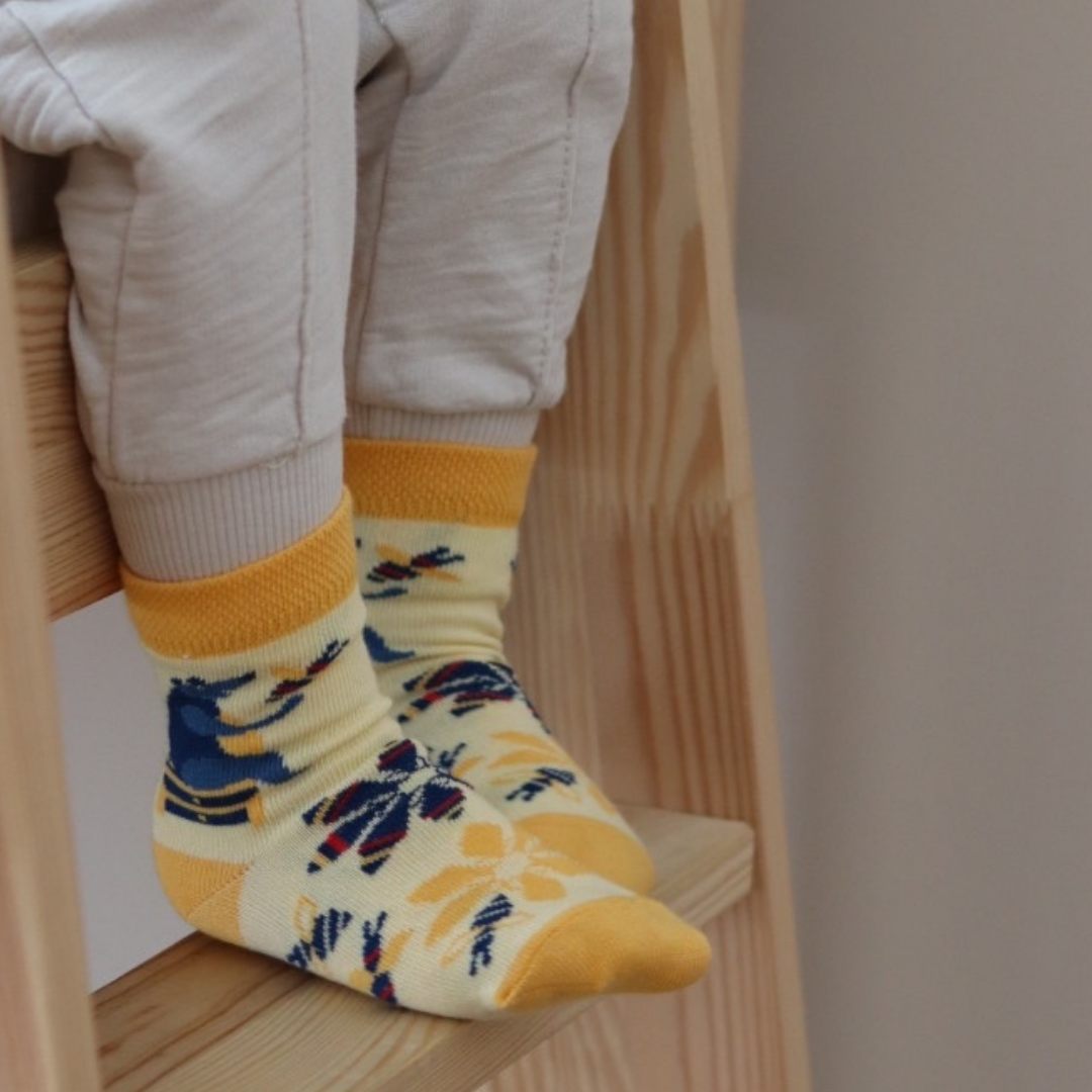 Dziecięce skarpety w rozmiarze 26 - 30 z kolekcji mikrokosmos z pszczołami